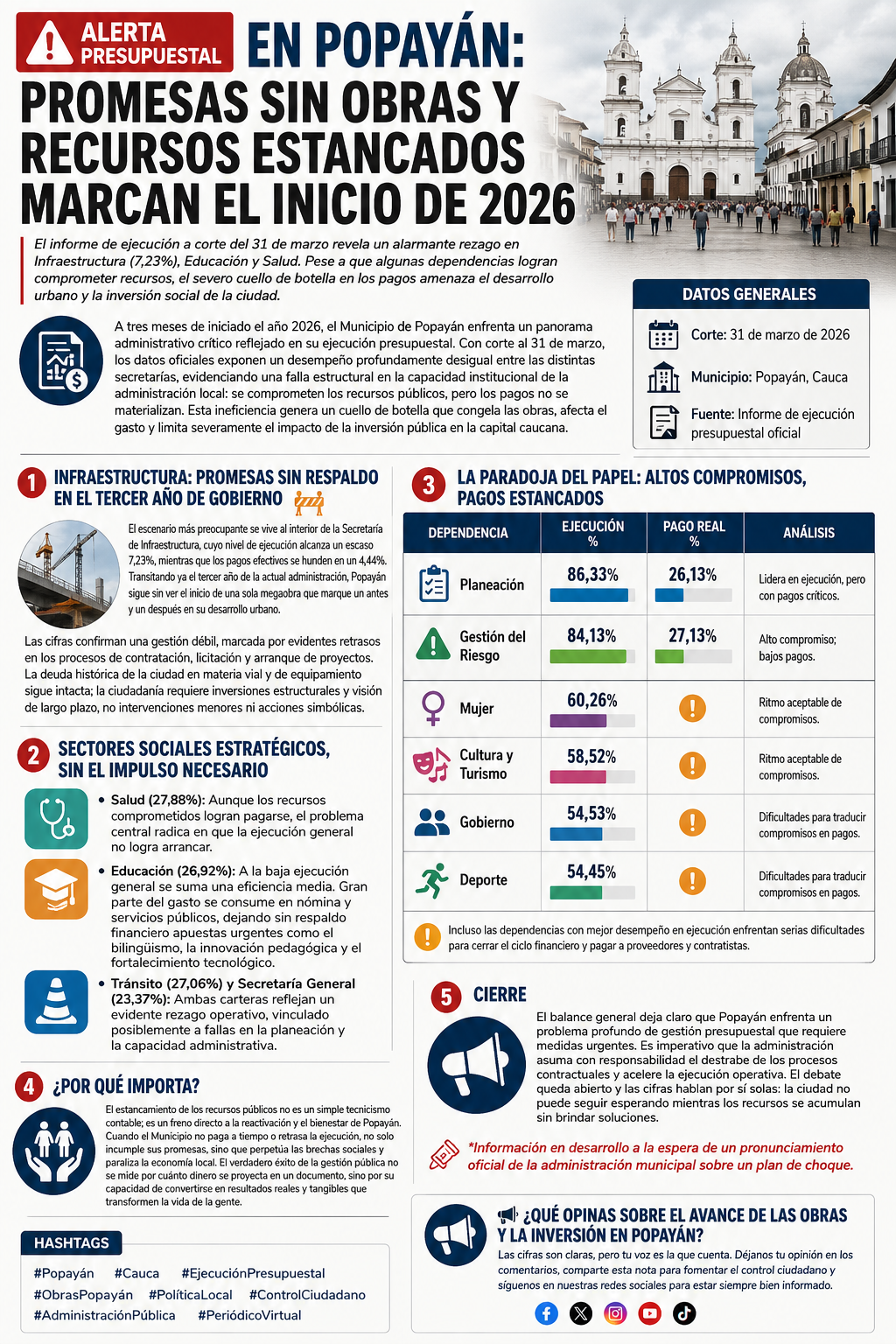 #Popayán #Cauca #EjecuciónPresupuestal #ObrasPopayán #PolíticaLocal #ControlCiudadano #AdministraciónPública #PeriódicoVirtual
