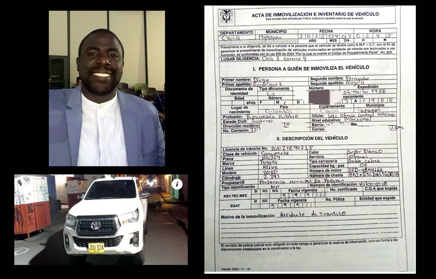 En el año 2025, Popayán fue escenario de un hecho que generó profunda indignación ciudadana: un accidente de tránsito en el que se vio involucrado un vehículo oficial adscrito a la Personería Municipal, conducido por un funcionario que no pertenecía a esa entidad y fuera de cualquier actividad misional conocida. En dicho accidente resultaron personas afectadas, quienes hasta hoy no han recibido una reparación clara, integral ni transparente, ni una explicación institucional que dignifique su condición de víctimas.