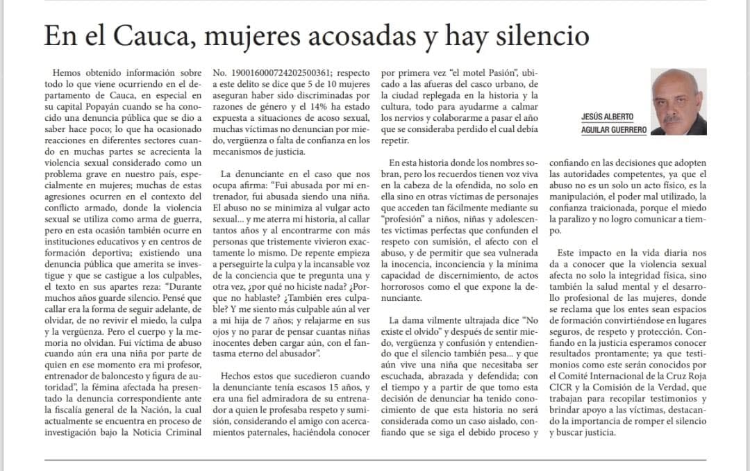 El peso de la idoneidad pública. Más allá de la gravedad de la acusación individual, este hecho pone bajo la lupa los filtros de contratación y la ética en la función pública de Popayán. Que un funcionario encargado de la política deportiva de la ciudad enfrente señalamientos de esta índole no solo afecta la imagen institucional, sino que revictimiza a quienes ven en el deporte un espacio de superación y seguridad.
