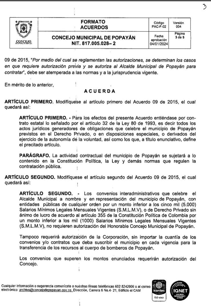 De acuerdo con el documento modificatorio del Concejo Municipal de Popayán (aprobado a inicios de 2024), que regula el Acuerdo 09 de 2015, existen reglas claras para los convenios interadministrativos: