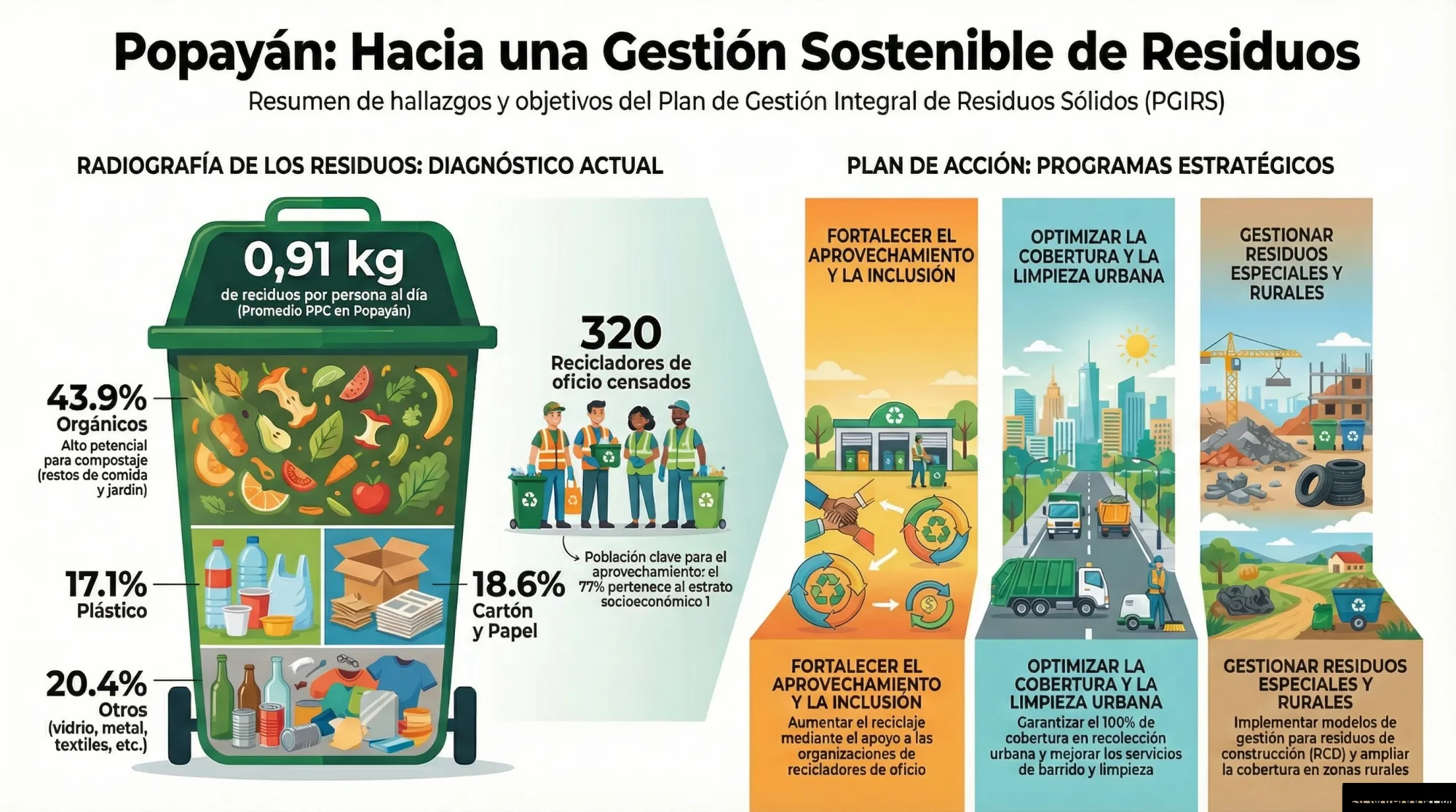 La radiografía presentada por el PGIRS deja en evidencia que Popayán requiere transitar urgentemente de un modelo de "recolección y entierro" a uno de economía circular. La responsabilidad es compartida: requiere una administración municipal que fortalezca las cadenas de valor del reciclaje y una ciudadanía que entienda que la separación en la fuente no es opcional, sino un imperativo de sostenibilidad urbana.
