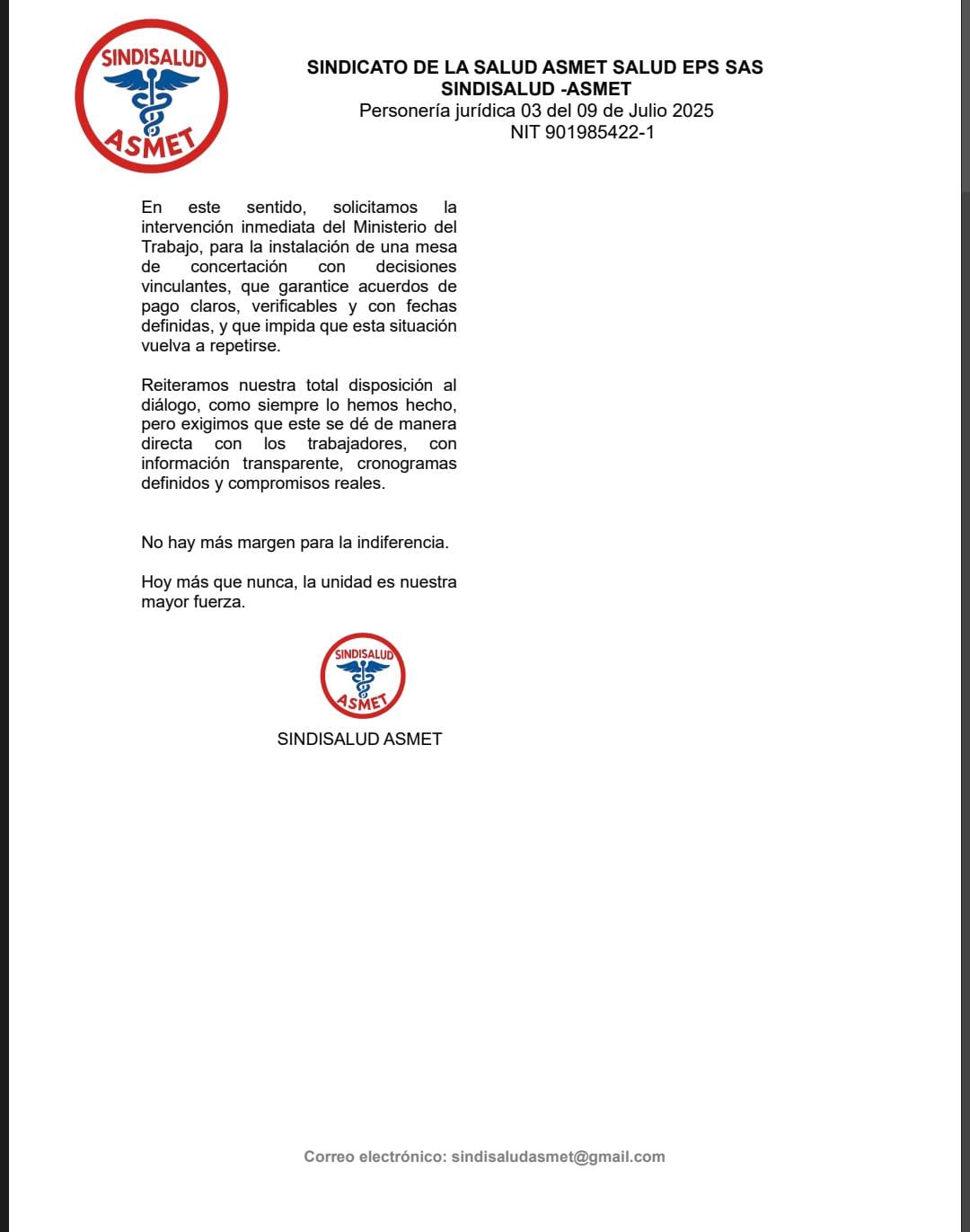 #AsmetSalud #SaludEnCrisis #SindicatoSalud #DerechosLaborales #Cauca #Armenia #MinisterioDelTrabajo #SaludColombia #ParoNacional